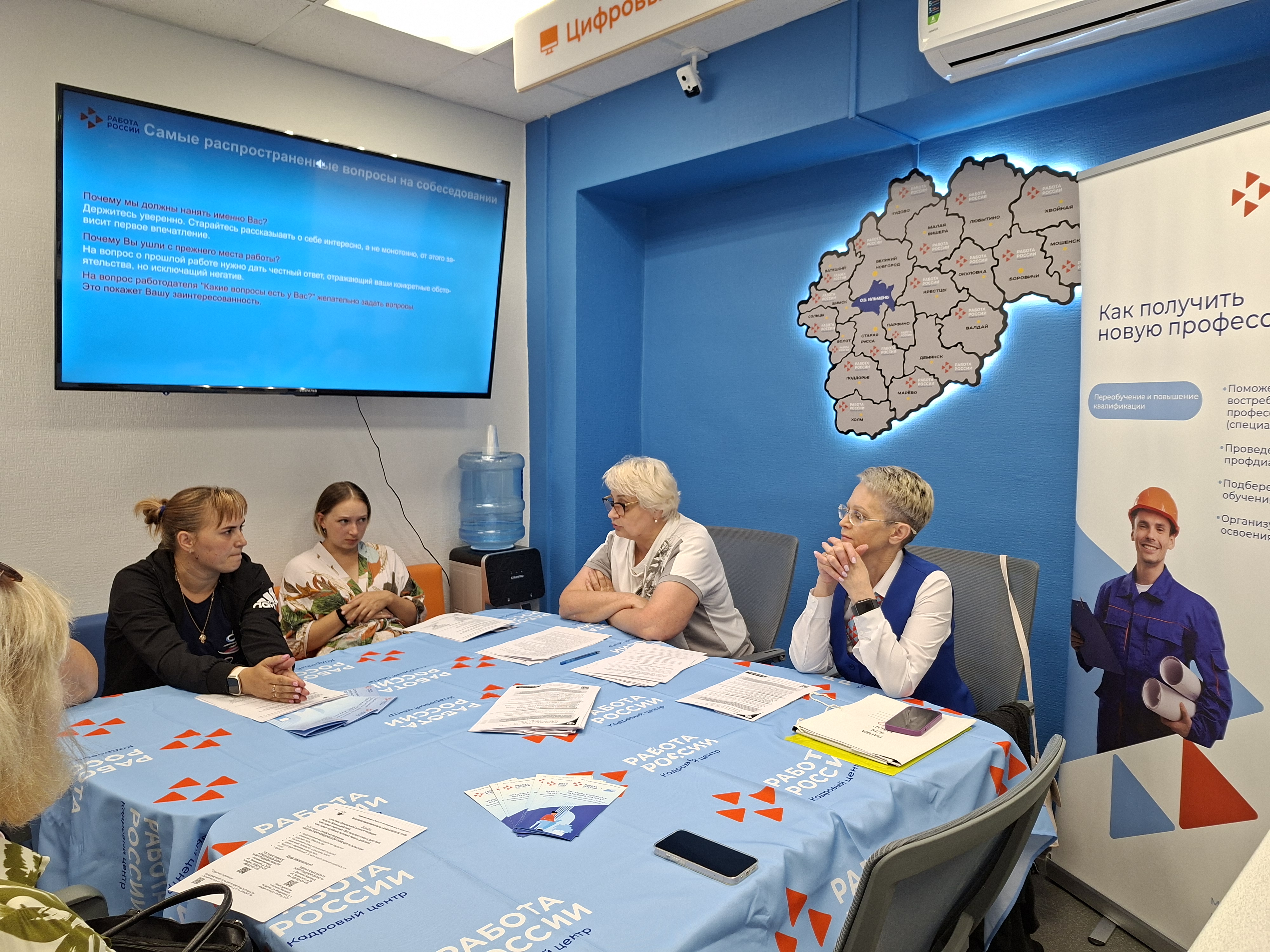 Специалисты кадровых центров помогали с поиском работы, в интерактивной форме обучаются эффективному ведению поиска работы, составлению резюме, готовятся к прохождению собеседования, знакомятся с успешными историями развития собственного дела, учатся развивать гибкие навыки, в доверительной атмосфере обсуждают трудности поиска работы, обменялись «лайфхаками» и делятся житейской мудростью в части поиска подходящего места работы, обучение и переобучение отдельных категорий граждан, Встречи с представителем налоговой и работодателями.