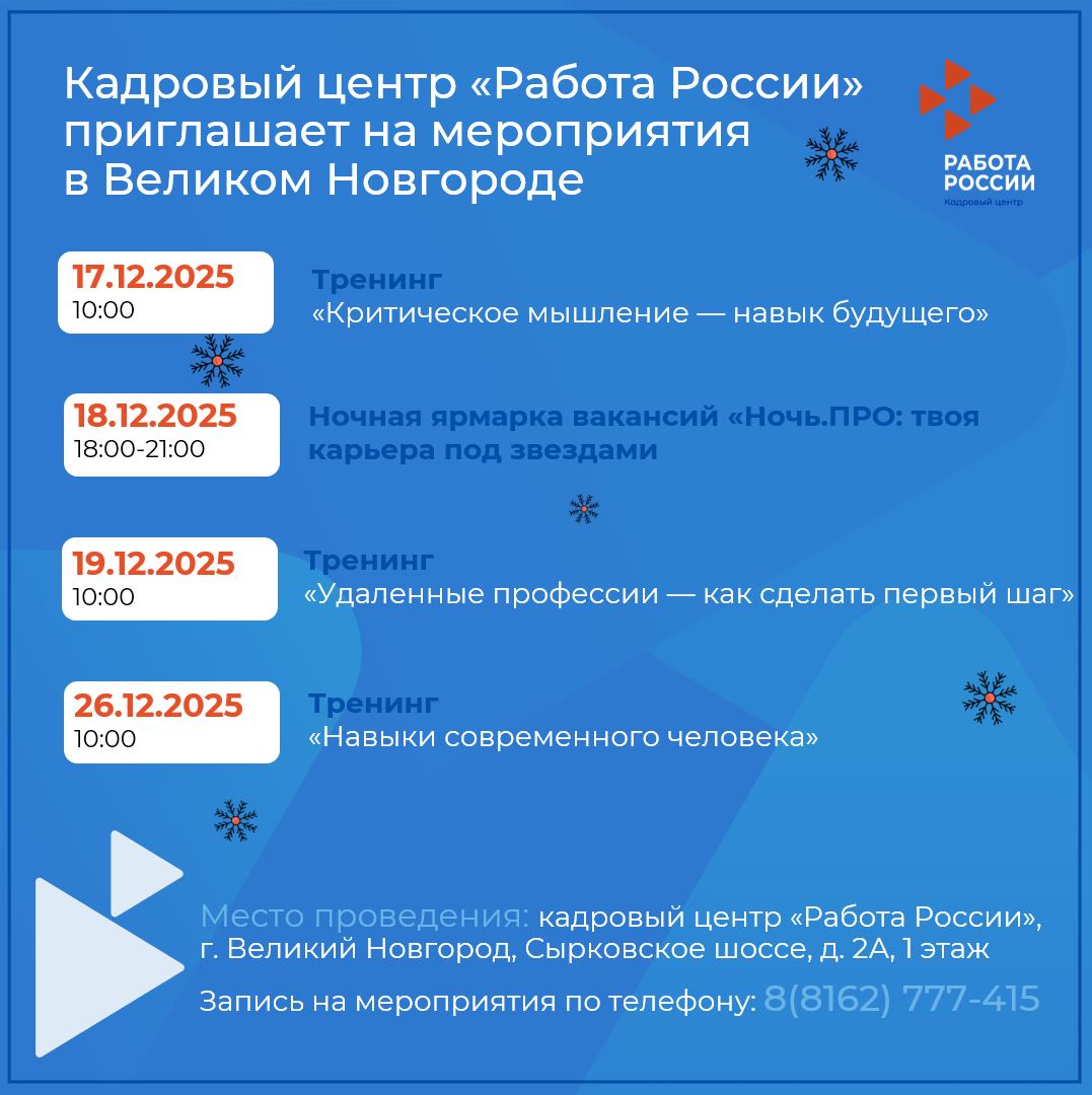 Не откладывайте возможности до января, а начните новый год с уверенностью и Кадровым центром «Работа России».