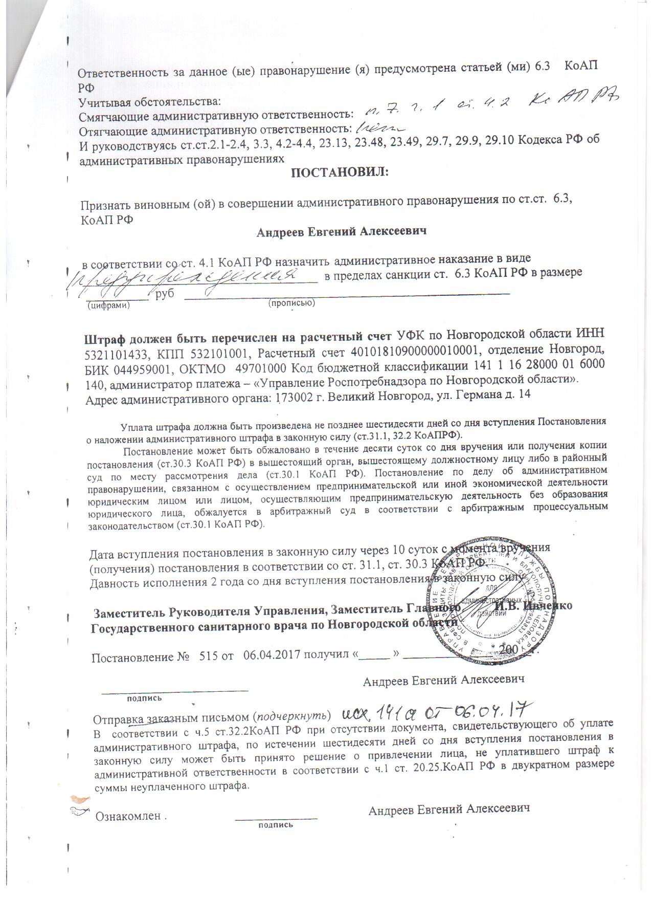 Проверка Управления Федеральной службы по надзору в сфере защиты прав потребителей и благополучия человека по Новгородской области. Входе проверки выявлены нарушения санитарного законодательства, а также условия, создающие угрозу возникновения и распространения инфекционных заболеваний, массовых неинфекционных заболеваний (отравлений) людей.