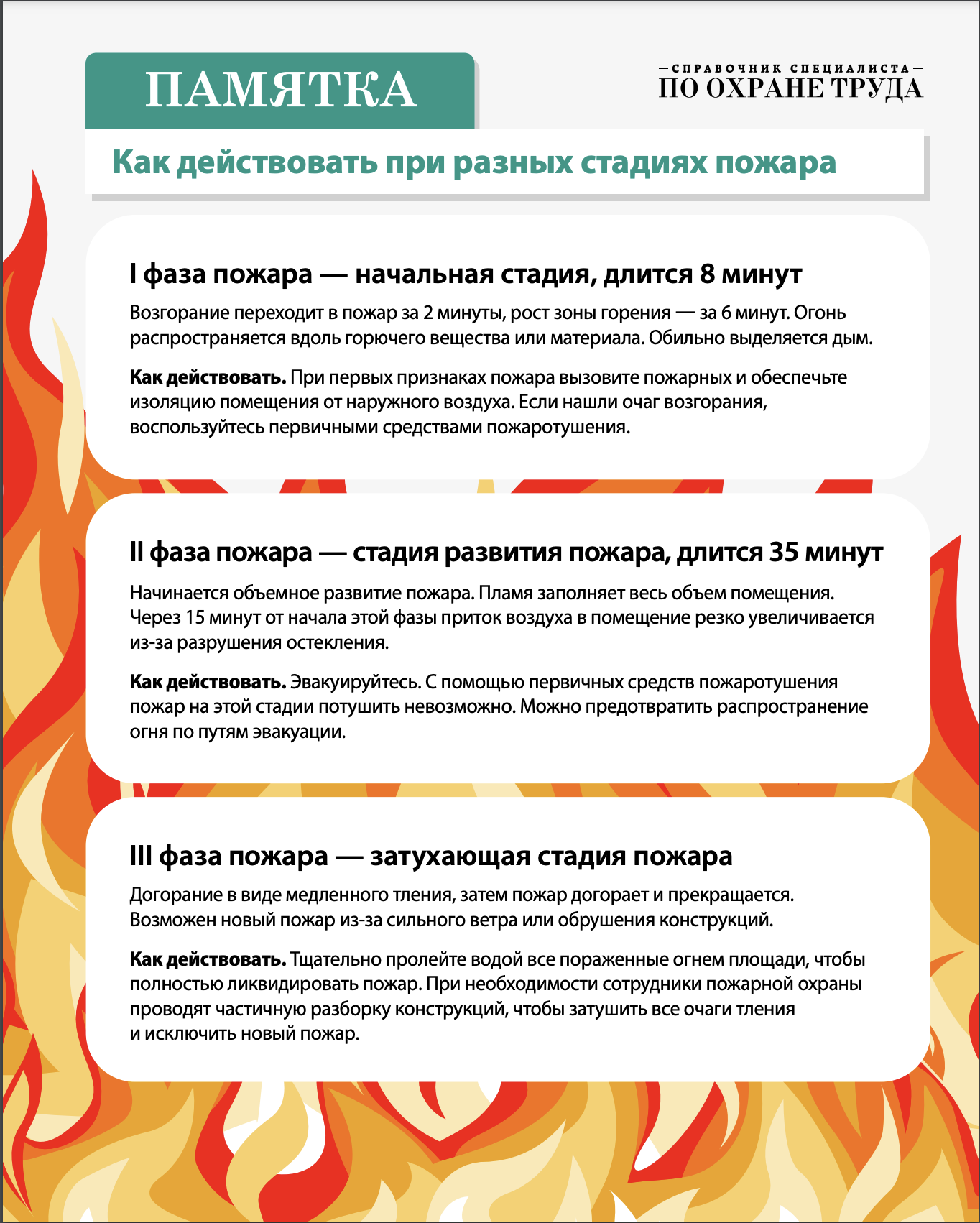 Основные мероприятия, которые нужно сделать при пожаре: